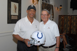 Lydell Mitchell with an autographed helmet for Dick Alaimo