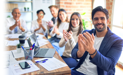 Photo: Group applauding the ability to earn CEU, CPE and PDU professional credits by attending ONLC's classes.