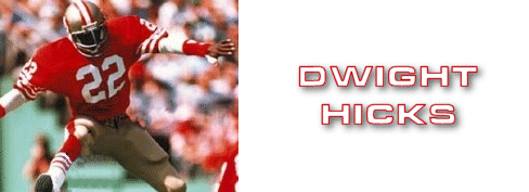 Dwight Hicks is the Mt. Holly Pro Day inductee for 2012. Born April 5, 1956 in New Jersey, Dwight attended Pennsauken High School and led that football team to a 9-1 record in 1972 and a #2 ranking in South Jersey as an outstanding safety/cornerback as named by the Courier Post. His talent took him to the University of Michigan, where Dwight received All-Big Ten Conference Honors in 1976, 1977 and All American honors, in 1977. He gained national recognition for outstanding personal performances in the 1976 Orange Bowl and during back-to-back Rose Bowl appearances in 1977-78. Drafted by the Detroit Lions in the 1978 Draft, Hicks elected to play instead in the CFL for the Toronto Argonauts. The following year he signed with the San Francisco 49ers as a free safety. He found himself the veteran leader of the team's secondary in the 1981 season, when the 49ers decided to rebuild their Defensive backfield through the draft.