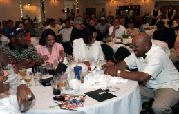Lots of fun and autographs at the reception (Franco - backgound left; Mike Rozier