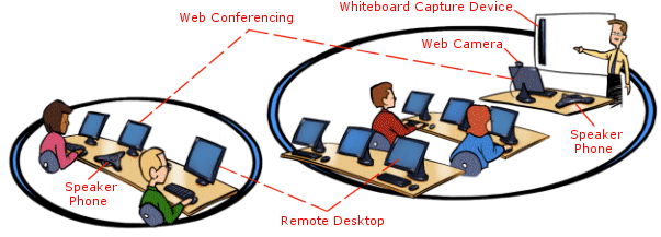 We use Internet conferencing technology and a phone bridge so all students